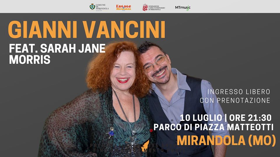Sull’onda del “Gianni Vancini & Friends”, Gianni Vancini, dividerà il palco di Mirandola Estate 2020 con un ospite d’eccezione, Sarah Jane Morris, artista inglese dall’enorme carisma e dalle stesse sonorità moderne jazz/funk del sassofonista. In una recente intervista la Morris ha indicato lo stesso Vancini tra suoi artisti italiani preferiti con cui desidera duettare. Sarà inoltre ospite del prossimo progetto discografico di Vancini, la cui uscita è prevista per l’inverno 2020/2021.