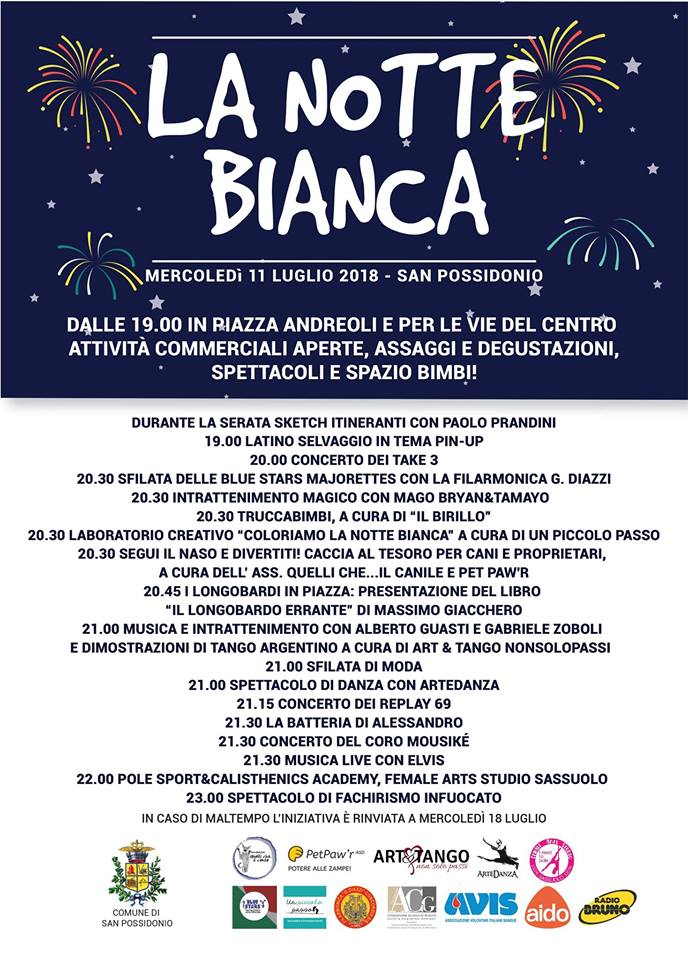Mercoledì 11 luglio a San Possidonio 3° edizione della Notte Bianca in centro, un evento che animerà la Piazza con numerose iniziative ed attività per grandi e piccoli!