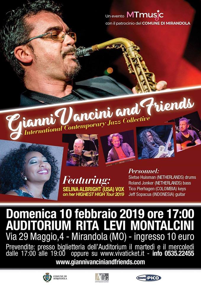 «Quest’anno – prosegue Vancini – saranno presenti artisti fantastici che provengono da ogni angolo del mondo: Sietse Huisman e Ronald Jonker dall’Olanda (batteria e basso), Tico Pierhagen dalla Colombia (alle tastiere), Jeff Sopacua dall’Indonesia (alla chitarra) e come ospite d’eccezione Selina Albright dall’America, figlia d’arte e voce straordinaria, che sta attualmente promuovendo il suo nuovo album “Highest High” con un tour internazionale». È possibile acquistare i biglietti per questo straordinario concerto in prevendita, presso la biglietteria dell’aula magna Montalcini, mercoledì dalle 17 alle 19 (costo del biglietto è di dieci euro con posto prenotabile al momento dell’acquisto) oppure online su www.vivaticket.it o telefonando al n. 0535/22455.