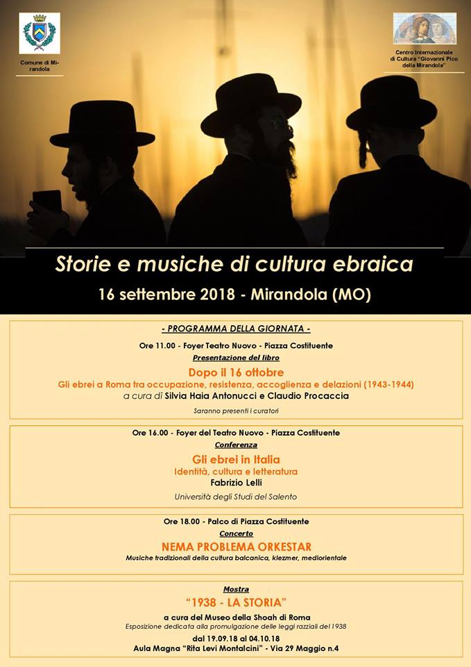 “Storie e musiche di cultura ebraica” è il titolo della manifestazione che si svolgerà domenica 16 settembre a Mirandola, organizzata dal Comune in collaborazione con il Centro Internazionale di Cultura Giovanni Pico della Mirandola.