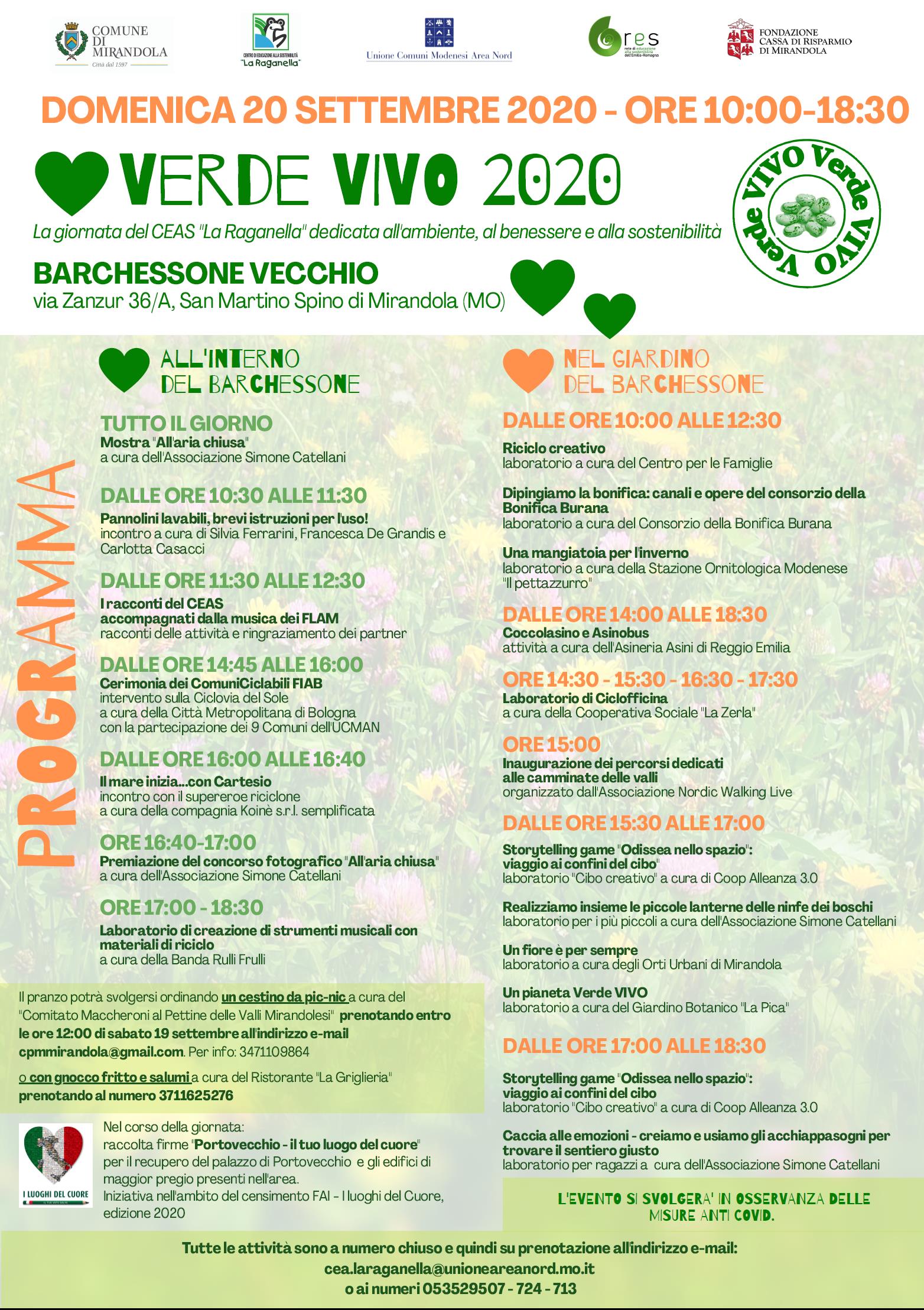 MIRANDOLA, FRAZIONE DI SAN MARTINO SPINO, AL BARCHESSONE VECCHIO, DOMENCIA 20 SETTEMBRE: SI FA FESTA CON “VERDE VIVO 2020”