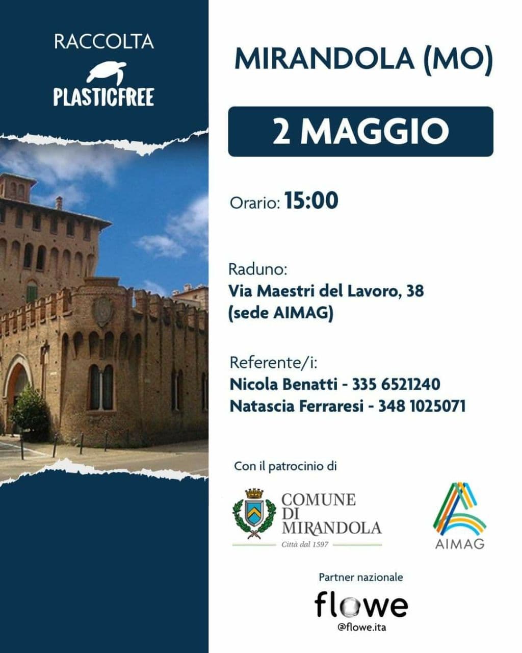 Domenica 2 maggio 2021 alle ore 15.00 si terrà il primo evento Plastic Free – realizzato con il patrocinio del Comune di Mirandola e di Gruppo AIMAG – i cui obiettivi sono: la sensibilizzazione dei cittadini e la liberazione di Mirandola da plastica e rifiuti.