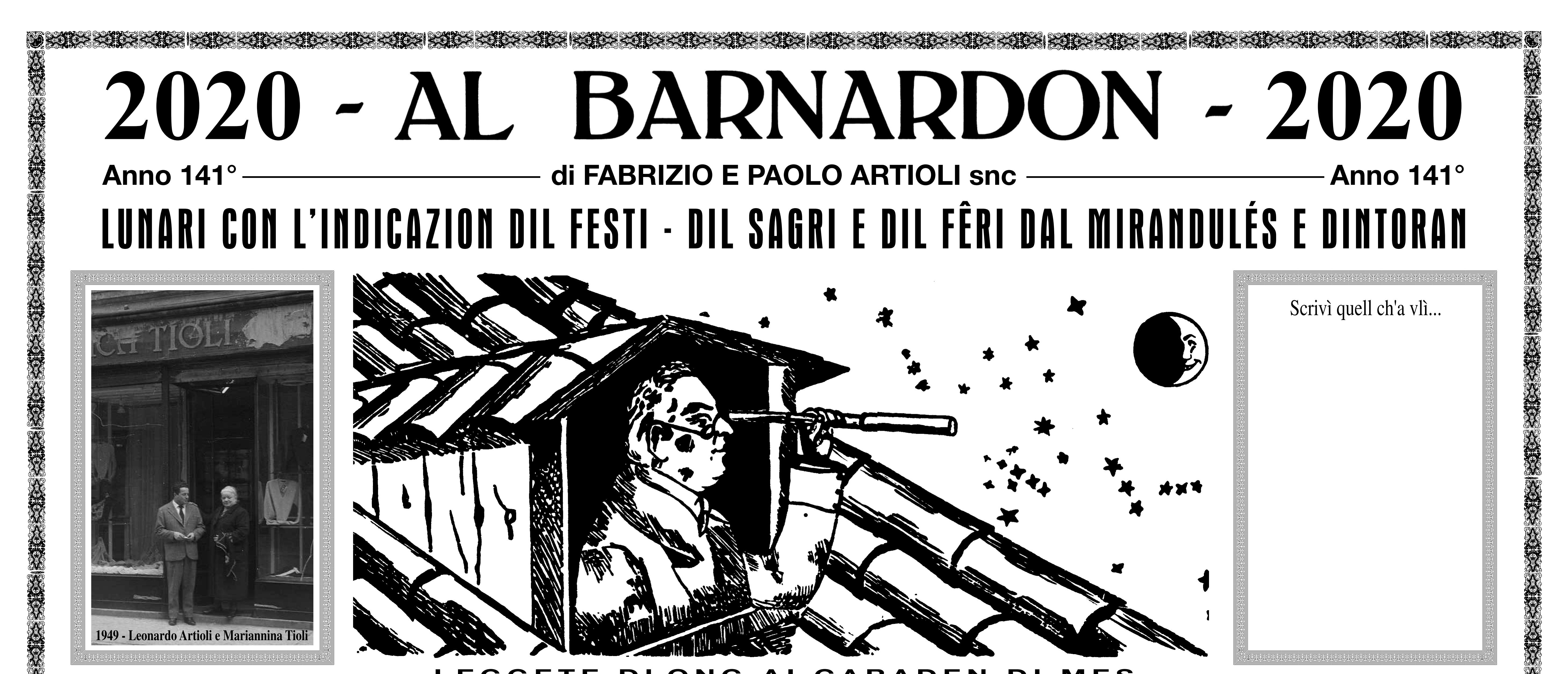 Per quanti ne fossero interessati, comunichiamo che il nostro lunario “Al Barnardon 2020” verrà presentato sabato 23 novembre e distribuito nelle edicole di tutti i comuni della Bassa (UCMAN), a Carpi e a Modena, a partire da lunedì 25 novembre.