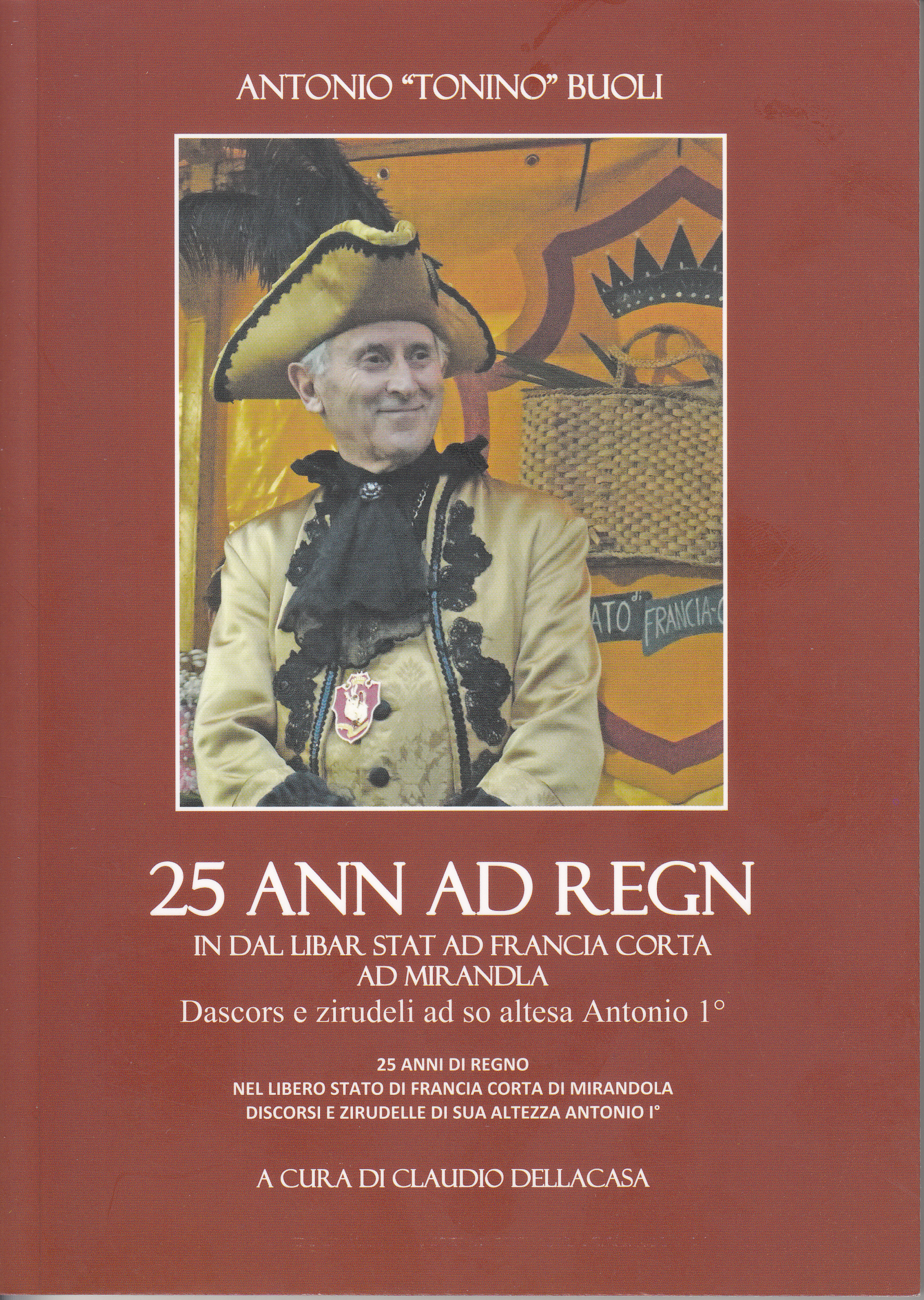 Un “libretto” (95 pagine) scritto in dialetto mirandolese (con traduzione per gli “stranieri”) composto da Antonio Buoli detto “Tonino” Principe del libero Stato di Francia Corta, in occasione dei suo 25 anni di regno.