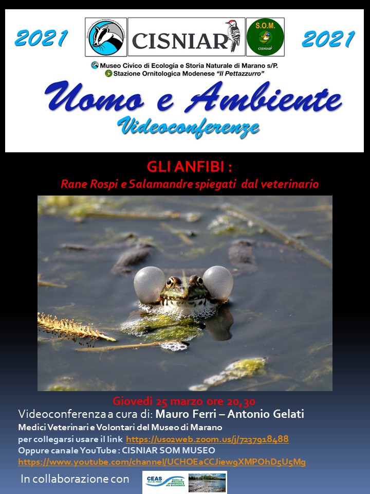 Il Museo Civico di Ecologia e Storia Naturale di Marano sul Panaro organizza per questo Giovedì 25 MARZO ALLE ORE 20,30 la conferenza “GLI ANFIBI: Rane, Rospi e Salamandre spiegati dal veterinario”