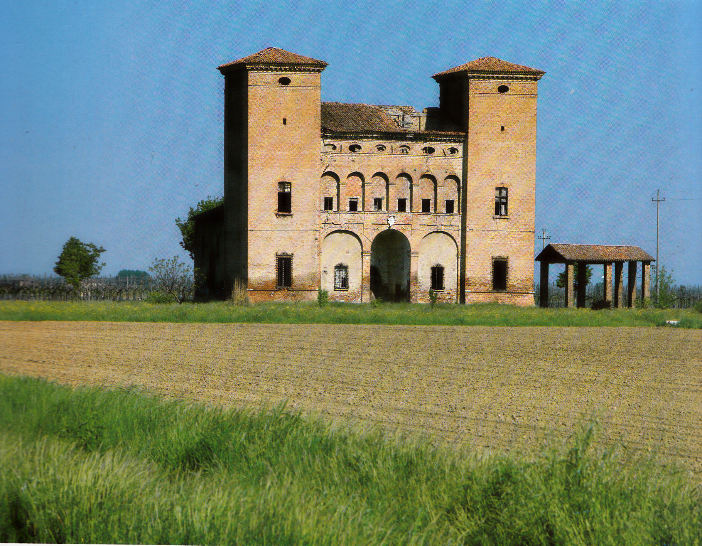 La massiccia, ma non per questo meno elegante, villa che sorge isolata tra la più piatta campagna, rappresenta un importante esempio di architettura in villa. L’intero edificio a pianta centrale con sala-androne passante si sviluppa in elevato, associando alle due torri angolari un corpo centrale forato da due ordini sovrapposti e diversi di logge e da occhi ovali.