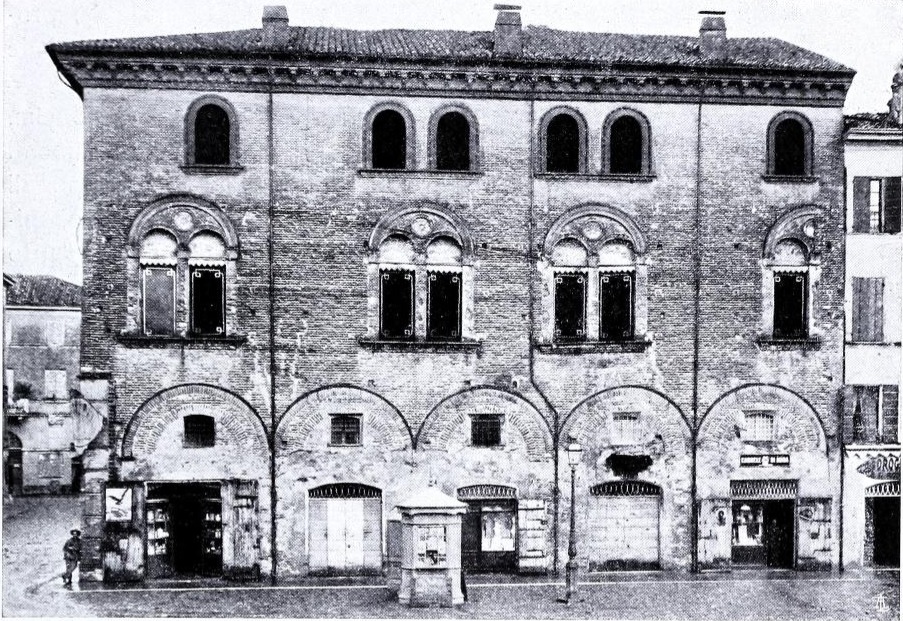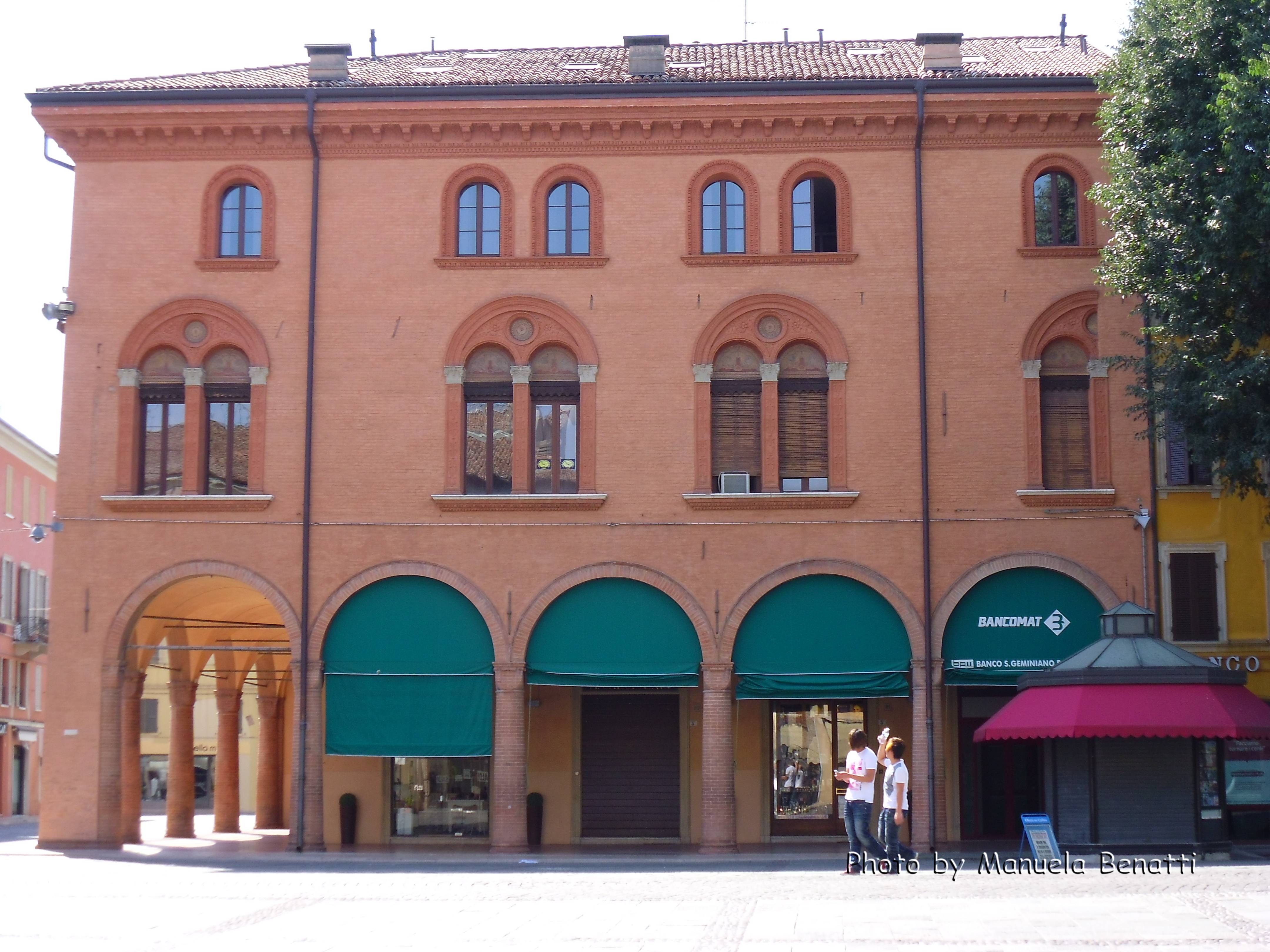 Appartenuto dal 1898 al 1912 alla Cassa di Risparmio di Mirandola, viene successivamente riaperto il bel portico rinascimentale.