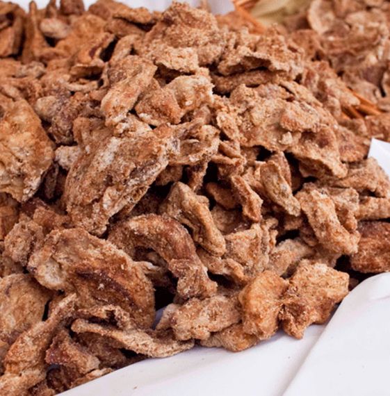 I pezzi di lardo destinati alla cottura per ottenere, dalla loro fusione, lo strutto e da ciò che rimaneva i ciccioli, venivano posti a cuocere nel paiolo della fornacella mobile fin dal mattino, in modo che verso sera si potesse preparare l’operazione della loro compressione. La cottura era lenta ed a fuoco non vivace, per evitare che un’ebollizione eccessiva cuocesse solo l’esterno del pezzo di grasso, rendendolo biondo senza aver raggiunto l’adeguata cottura del pezzo al’interno. Inoltre l’esagerata ebollizione poteva far straripare all’esterno il liquido di bollitura. Vi era una persona costantemente addetta al paiolo, la quale doveva calibrare il fuoco e mescolare assai spesso i ciccioli. Tuttavia il norcino vegliava e ogni tanto andava a verificare il punto di cottura ed il fuoco. Appena i ciccioli avevano assunto un colore biondo delicato, la razdóra, con un mestolone, asportava dal pentolone una minima quantità di strutto che sarebbe servito esclusivamente per friggere i dolci, i tortelli di marmellata o di crema. Era uno strutto bianchissimo, senza quel gusto di bruciaticcio che aveva lo strutto più maturo. Quando la cottura dei ciccioli giungeva al termine, interveniva il norcino che, con un mestolone, versava i ciccioli ed il liquido o grasso di cottura dentro ad un telo di canapa a maglie larghe che tratteneva i pezzi di grasso e lasciava colare di sotto lo strutto bollente, raccolto nel vaso di terracotta. Il telo veniva poi arrotolato dai due assistenti, che stavano ai due lati, mentre lo trattenevano, per farne colare le ultime parti di strutto. Riaperto il telo, il norcino salava i ciccioli, versava le spezie macinate finemente ed aggiungeva le foglie di alloro. Si riavvolgeva il telo, poi veniva posto tra due pezzi d’asse che venivano a loro volta stretti con energia: lo strutto residuo colava di sotto e veniva accuratamente raccolto in un vaso. Le formelline, compatte soprattutto dopo che si erano raffreddate, venivano poste una sopra l’altra ed assaggiate dal norcino. Di solito una formellina toccava di diritto al norcino.