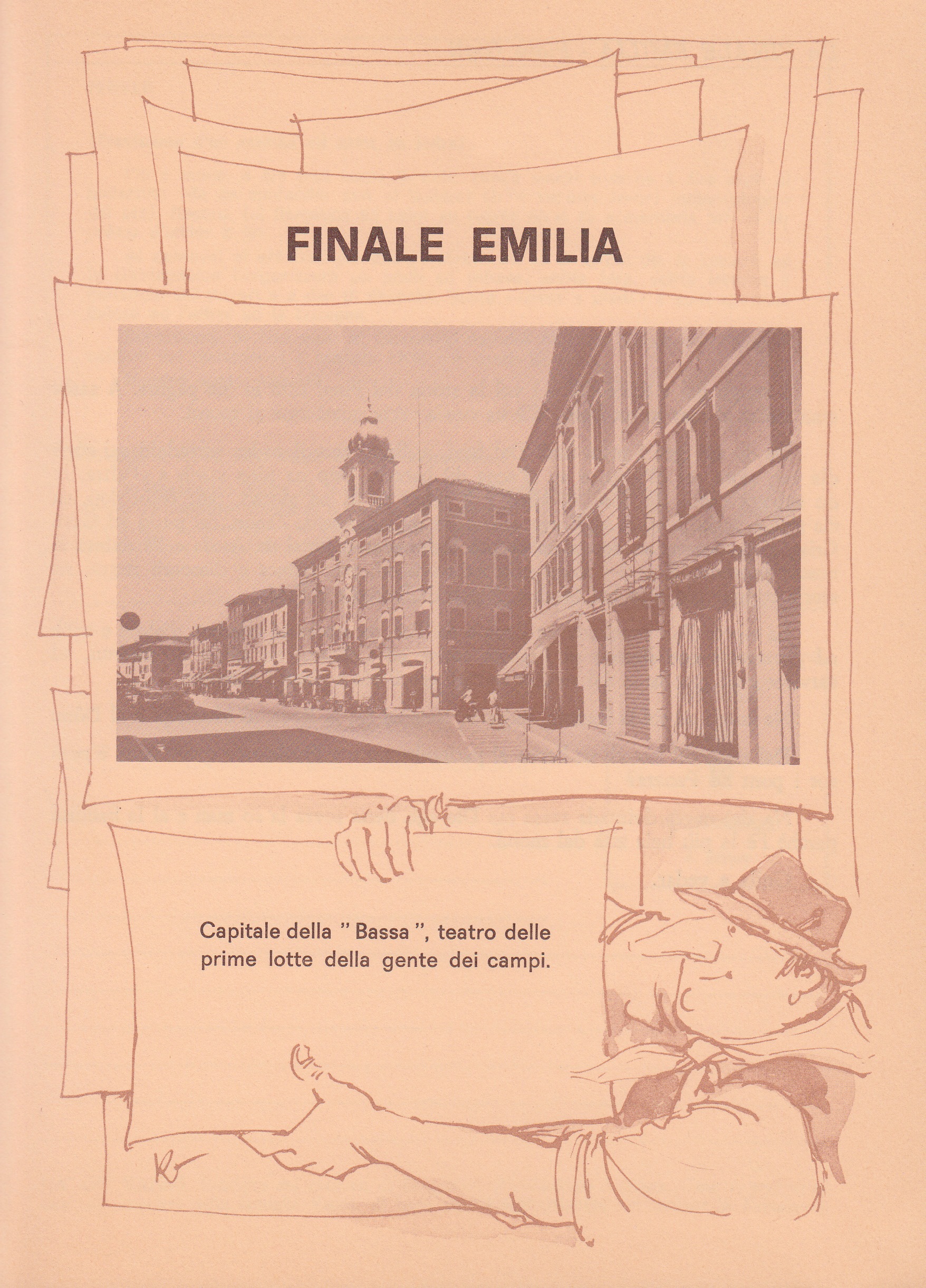 Da du èni gnu i prim òm? Dal fred, a dirèv, cme i nadar salvadghi sui zògh dla val, alora sol dl’acua, e su cl’acua dil barach. Dop na pina atach a d’altra, in du agh’era l’acua dla tèra, di àlbar e il primi ca. E un gioran, tant secul dop, su cla tèra è passa’ i suldà ad Roma, e con lor un cmandant, Zanon, cal parlò ad Gesù Crist, e quatarzent an dop al salvò con la fumana al Final da Attila cl’è dvinta al nostar protetor. E dop d’alora tuta na storia un poc bianca e dimondi negra, na storia cumplicada e in bal Modna, Nunantla,Bulogna e Frara.