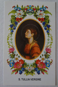 Tullia era la figlia del Vescovo di Lione, Eucherio. Non si pensi a disordini né a unioni irregolari. Nel V secolo, al tempo di Eucherio, nessuna norma vietava infatti ai Vescovi di avere famiglia; o meglio di eleggere Vescovi che avessero già moglie e magari figli. Al contrario, la consorte e la prole, con la loro condotta e le loro virtù, potevano contribuire a far cadere, sul padre e marito, la scelta della comunità cristiana bisognosa di un Vescovo. La donna sposata da Eucherio si chiamava Galla. Gli aveva dato due figlie: Tullia e Consorzia. Fanciulle, furono affidate ad un monastero, dove vennero educate accuratamente e santamente allevate. Ad una certa età, d’accordo con la moglie, anche Eucherio si ritirò nel monastero della celebre isola di Lérins. Ne uscì soltanto quando venne chiamato sulla cattedra episcopale di Lione. Esemplare come pastore, ammirato come scrittore, il Vescovo Eucherio, dopo la morte, venne onorato come un Santo. E Sante furono considerate anche le sue due figlie: Tullia, festeggiata oggi, e Consorzia, ricordata il 22 giugno. Esse trascorsero tutta la loro vita nel monastero, santificandosi segretamente, in umiltà e in preghiera.