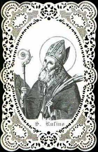 Primo vescovo di Assisi e martire, san Rufino è il patrono principale della diocesi umbra e a lui è dedicata la Cattedrale fin dalla prima metà del XI secolo. Una «passio» del IX secolo racconta che Rufino, vescovo della città di Amasia nel Ponto, dopo aver convertito il proconsole, sarebbe arrivato con suo figlio Cesidio nella regione dei Marsi nell’Abruzzo. In questa zona avrebbe consacrato una chiesa e dopo proseguì per predicare il Vangelo ad Assisi. Qui venne scoperto dal proconsole Aspasio che, dopo averlo sottoposto a diversi supplizi, lo condannò a morte perché cristiano. Rufino morì gettato nelle acque di un fiume con una pietra legata al collo. Un’antica tradizione indica come luogo del martirio il paese di Costano che ora fa parte del Comune di Bastia Umbra, sulla riva del fiume Chiascio. Il corpo del martire venne trasportato da Costano ad Assisi, proprio nel luogo dove sorge la Cattedrale.