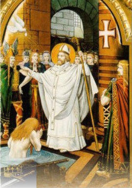 Nato cittadino romano, Remigio vede crollare nel 476 l’Impero di Occidente e sparire il dominio di Roma nella sua Gallia, che passa in mano alle tribù barbariche di Burgundi, Alamanni e Visigoti. Sul finire del V secolo, il popolo germanico dei Franchi occupa via via il Paese, al quale darà infine anche il proprio nome: Francia. Remigio appartiene al ceto dei gallo romani, legati da generazioni alla cultura latina, da cui ora provengono molti uomini di Chiesa. Viene acclamato vescovo di Reims prima di compiere i trent’anni, e un suo fratello di nome Principio sarà vescovo di Soissons. All’epoca, la Gallia è un arcipelago di isole e isolette cattoliche, in un mare formato da Burgundi e Visigoti di fede ariana, mentre le campagne sono ancora pagane, come a loro modo pagani sono anche i Franchi, condotti in Gallia dal re Childerico. Meno evoluti degli altri popoli, i Franchi sono però dei grandi combattenti (non portano elmo né corazza) e hanno reso buoni servizi militari a Roma in passato. Morto nel 482 Childerico, gli succede il figlio Clodoveo quindicenne. A lui Remigio, vescovo cattolico in territorio franco, scrive lettere rispettose e insieme autorevoli. Una di esse dice: “Vegliate a che il Signore non distolga lo sguardo da voi. Consigliatevi con i vostri vescovi. Divertitevi con i giovani, ma deliberate coi vecchi”. Da un lato lo ammonisce, dall’altro riconosce la sua sovranità: un muoversi anche da politico, che è inevitabile per Remigio, “evangelizzatore a vita” tra i Franchi. E’ un aiuto prezioso per Clodoveo, perché favorisce l’adesione degli altri vescovi e dei gruppi galloromani. Così il re giungerà a essere padrone del Paese, dopo la vittoria del 507 a Vouillé sui Visigoti, dando così l’inizio alla dinastia dei Merovingi. Ma non c’è soltanto la politica. Su di lui influisce fortemente in senso religioso la moglie Clotilde, che è già cattolica; influisce Remigio, che lo istruisce personalmente nella fede. E molti atti successivi del re Clodoveo rivelano una religiosità personale autentica. Si arriva così al suo battesimo, per opera del vescovo, a Reims, in un giorno di Natale di un anno incerto. Alcuni sostengono fosse il 497. In un’iscrizione della fine del XV secolo a Reims si legge: “L’an de grace cinq cent le roy Clovis – receut a Reims par saint Remy baptesme”. Saremmo allora al 500. Ma dopo quel Natale, quale che sia, riprende il lungo, feriale lavoro di Remigio per annunciare il Vangelo a chi non è re né principe; senza poeti e cronisti al seguito. Una fatica durata quasi settant’anni, secondo una tradizione. Un’immersione totale nei suoi doveri, oscuramente portata avanti, e di cui si parlerà soltanto dopo la sua morte, quando Remigio sarà acclamato santo direttamente dalla voce popolare.