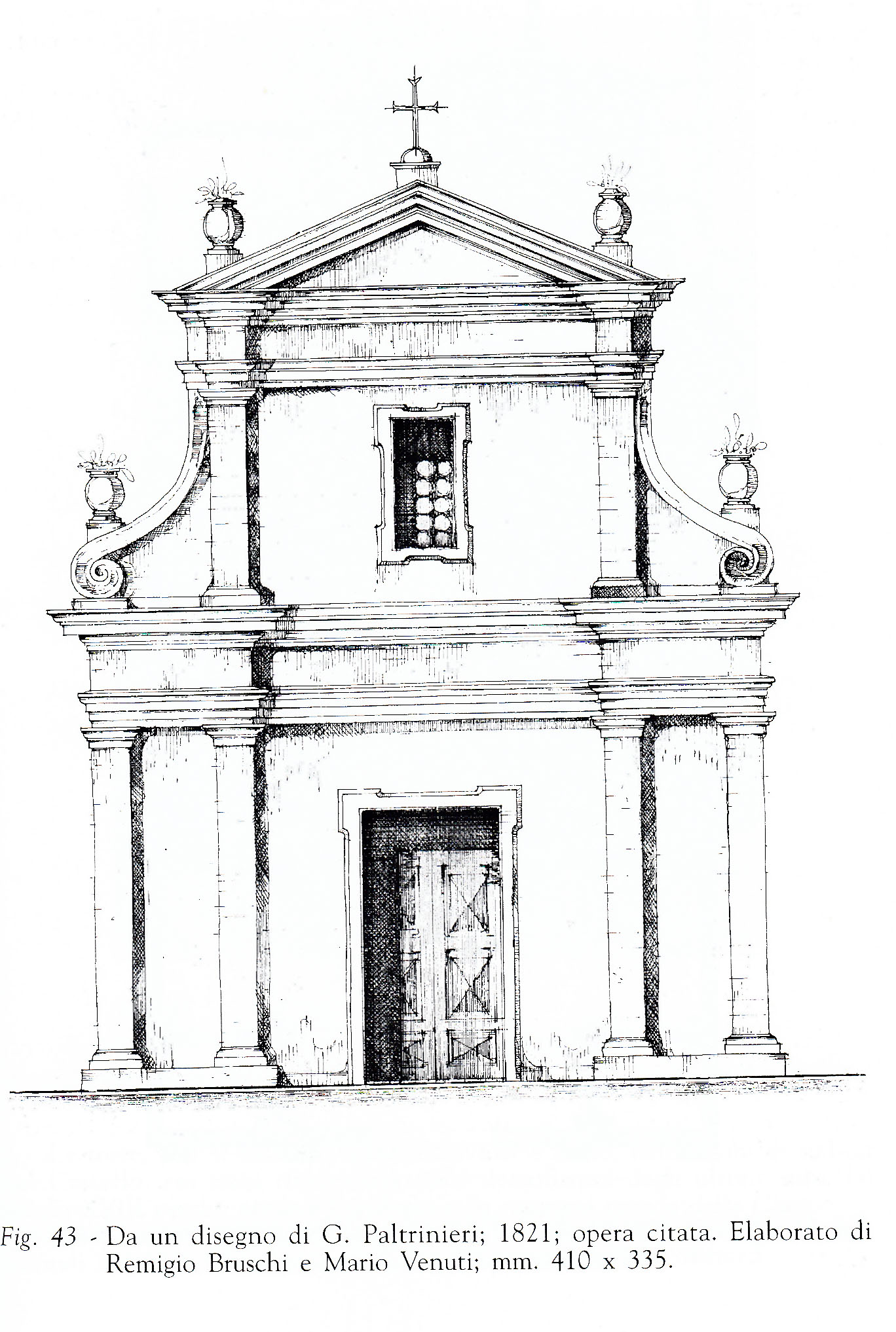 Così si presentava la chiesa prima della chiusura al culto (nel 1768) e della sua trasformazione in deposito e magazzino di grano (1834).