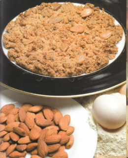 Tritate grossolanamente le nocciole e le mandorle poi unitele, in una terrina, con gli amaretti tritati manualmente e 50 gr. di zucchero. Mescolate bene il tutto. In un’altra terrina in ceramica ponete le farine (miscelate tra loro) al centro, poi incorporate lo zucchero rimanente (80 gr.), la buccia di limone grattugiata e 1/4 del composto di nocciole e mandare.