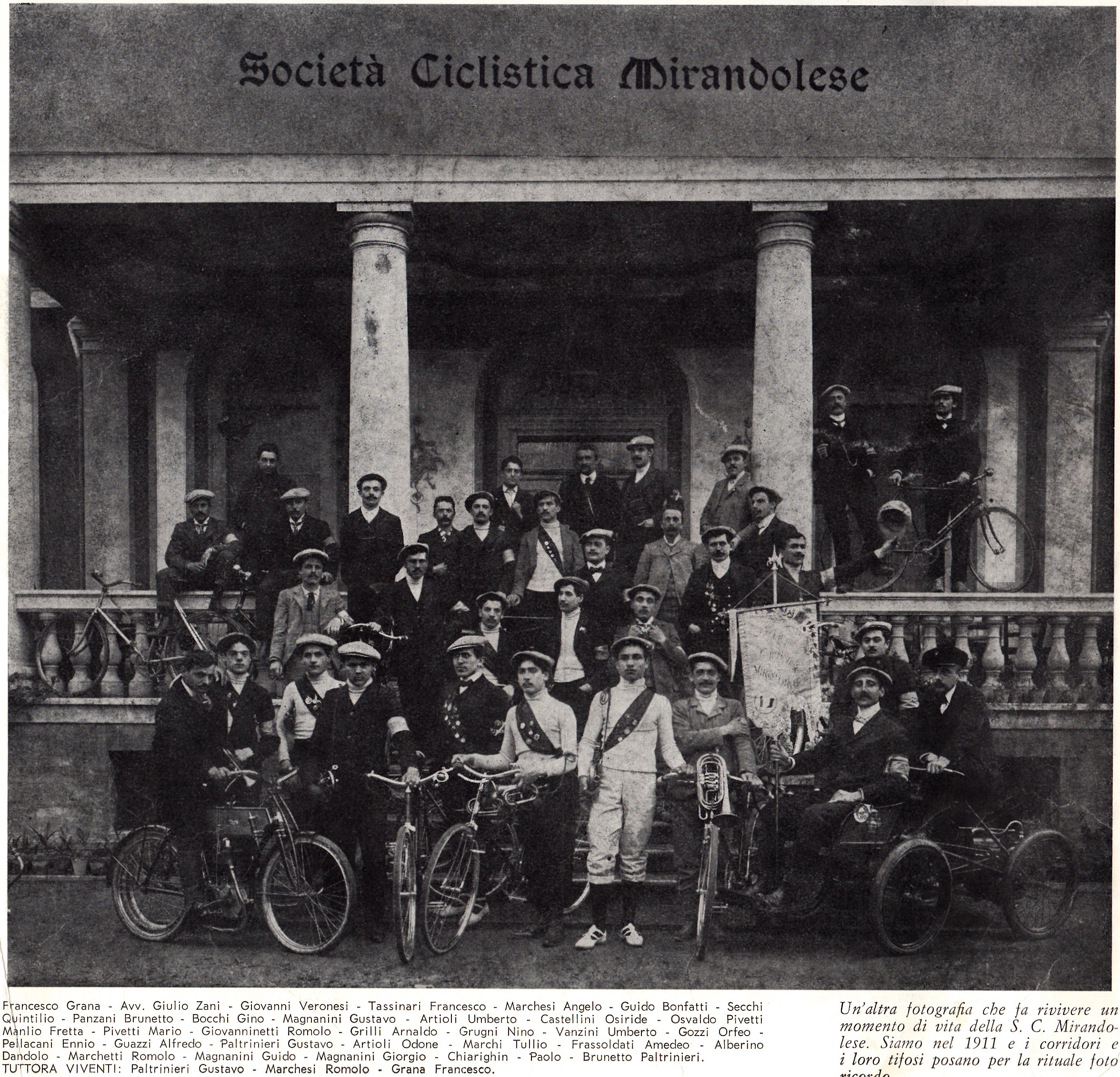Nel 1898 nasce anche il “Veloce Club Mirandolese”, voluto dai primi innamorati della bicicletta, anzi, del velocipede. Presidente è l’avv. Angiolcaro Magnani, vice presidente Guido Magnanini e segretario il rag. Alceste Gelatti.