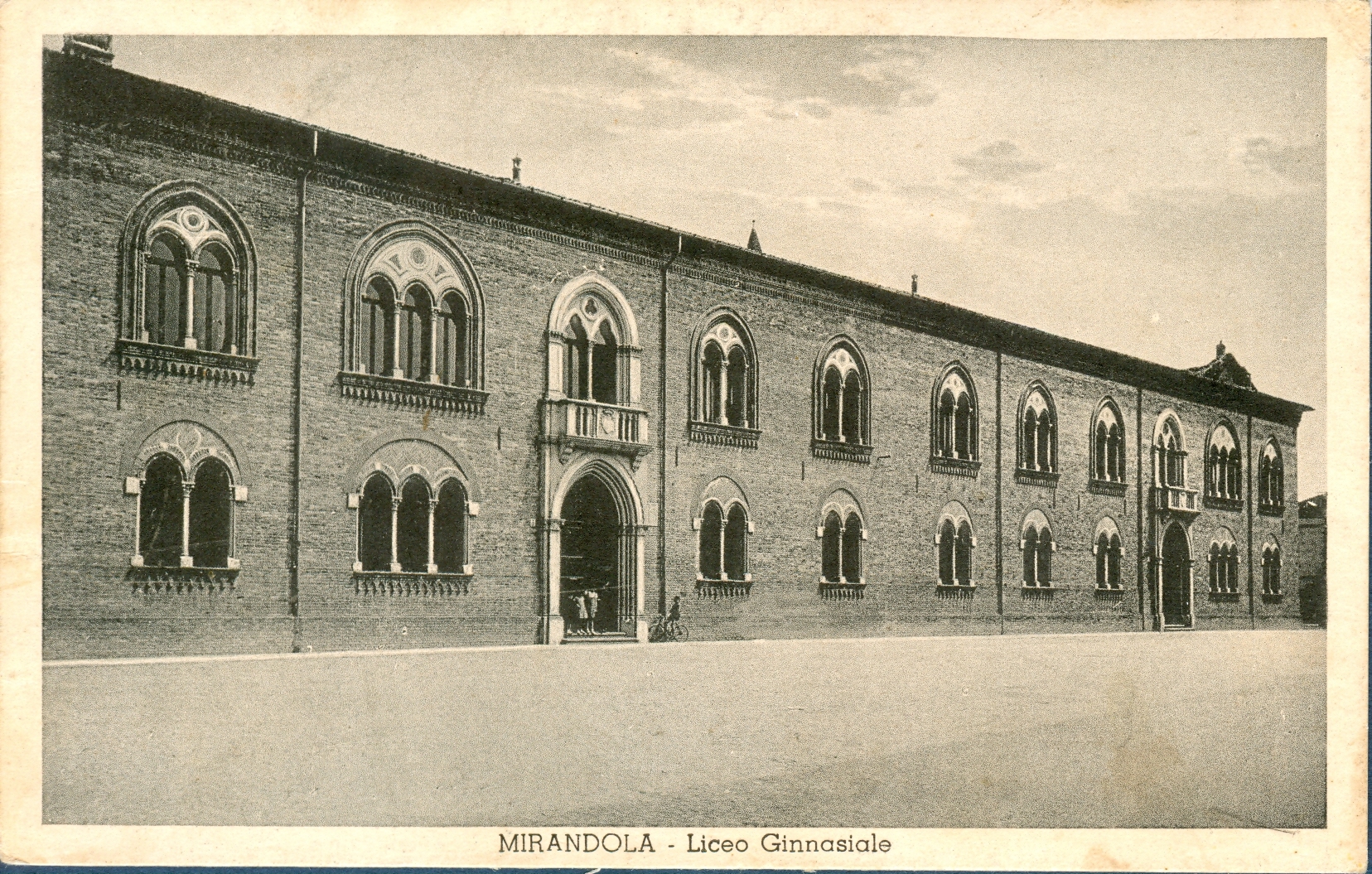 Nel 1849, con la riforma scolastica del governo estense, la scuola classica di Mirandola subiva una profonda modifica. Anche il Liceo classico o corso di Filosofia, che durava da quasi due secoli, con qualche interruzione, veniva riformato e subì una crisi, determinata dalla soppressione delle ultime tre classi del Ginnasio e cioè della III Ginnasiale, o corso di Grammatica suprema, della IV G„ o corso di Umanità, e della V G., o corso di Retorica. In seguito alle rimostranze della cittadinanza, si riuscì nel 1870 a ripristinare il funzionamento delle tre classi; nel 1871 fu riaperta la IV e l’anno successivo la V Ginnasio. Da quell’anno sino al 1903, anno in cui fu soppresso definitivamente, il Ginnasio funzionò abbastanza regolarmente con una discreta frequenza da parte degli allievi.