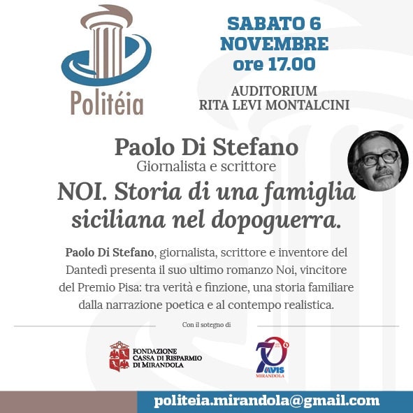 Sabato prossimo ci troviamo in Aula Magna Rita Levi Montalcini con Paolo Di Stefano, giornalista, scrittore e inventore del Dantedi che presenterà il suo ultimo romanzo Noi, vincitore del Premio Pisa: tra verità e finzione, una storia familiare dalla narrazione poetica e al contempo realistica.
