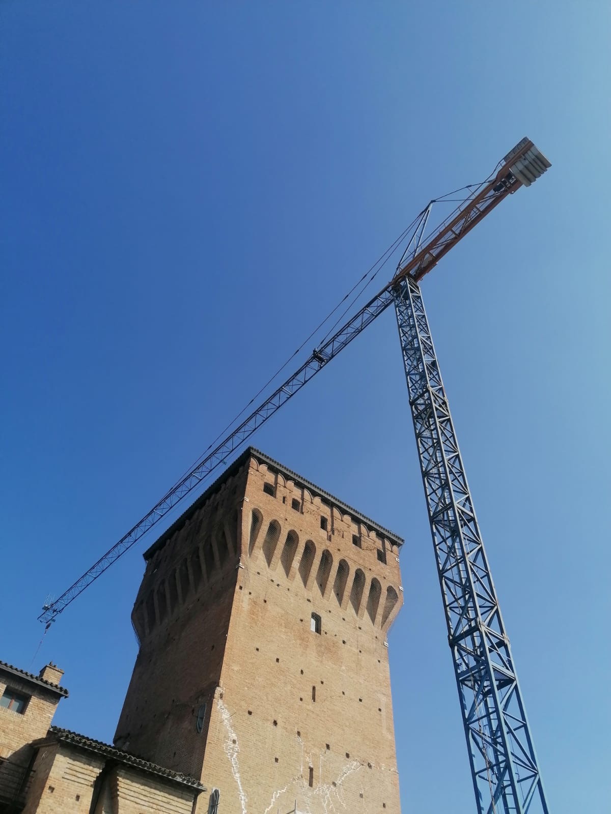 Nei mesi scorsi hanno preso il via i lavori del primo stralcio di restauro e miglioramento sismico della Rocca estense di San Felice sul Panaro, fatta erigere nel 1340 dal Marchese Obizzo III d’Este. Dopo aver realizzato le recinzioni e la viabilità di cantiere, oltre all’installazione dei ponteggi e dell’imponente gru, si è proceduto all’esecuzione delle prime opere necessarie a operare in sicurezza, tra cui il puntellamento della Sala Giulio II.