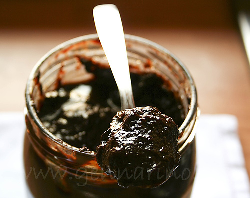 Rovesciare il tutto nel pentolone del mosto mescolando ogni tanto; fare bollire, non troppo forte per qualche ora fino a quando, facendo la prova piatto, vedete che il composto ha un bel colore marrone scuro e denso (tipo miele) assaggiate la frutta dai pezzi più grossolani, se è cotta ma non si scioglie e i frutti secchi sono più teneri, a questo punto si dovrebbe essere giunti alla fine, totale di tempo circa 7-8 ore. Si lascia intiepidire e mette invasi che si possono chiudere bene, non è necessario farli bollire di nuovo.