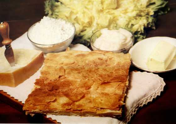 Quando la manipolazione è stata paziente e il grado di cottura esatto, la torta assume l’aspetto di una millefoglie, ma non a pellicole fragili, bensì tenerelle e sciroppate dal formaggio filante: solo la superficie deve essere rosata e croccante.