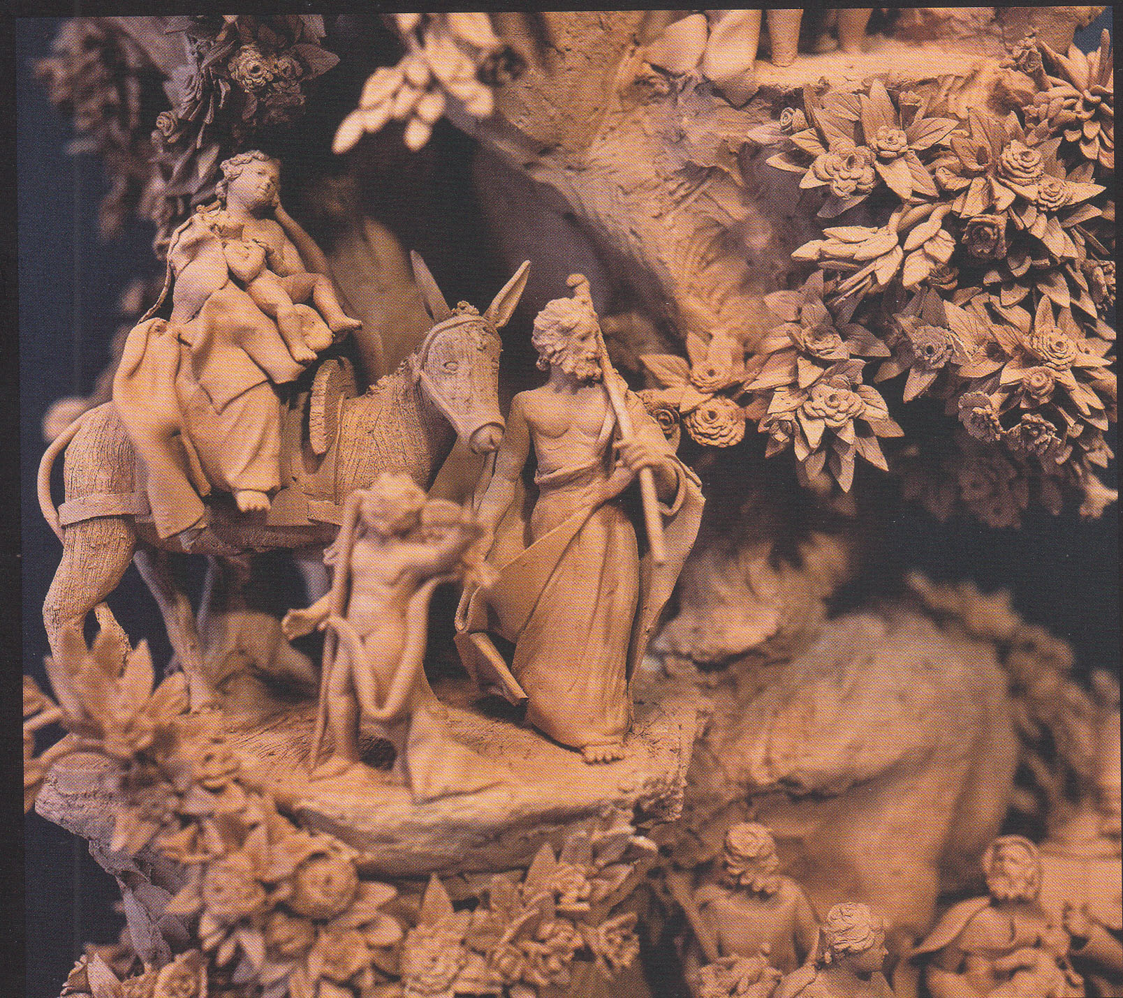 L’opera è composta da circa ottantamila pezzi tra foglie, fiori e personaggi, che propongono, con una interpretazione personale, l’antica tradizione del presepe di Pasqua – nato a Napoli probabilmente nel XV secolo – che rappresenta la vittoria della vita sulla morte.