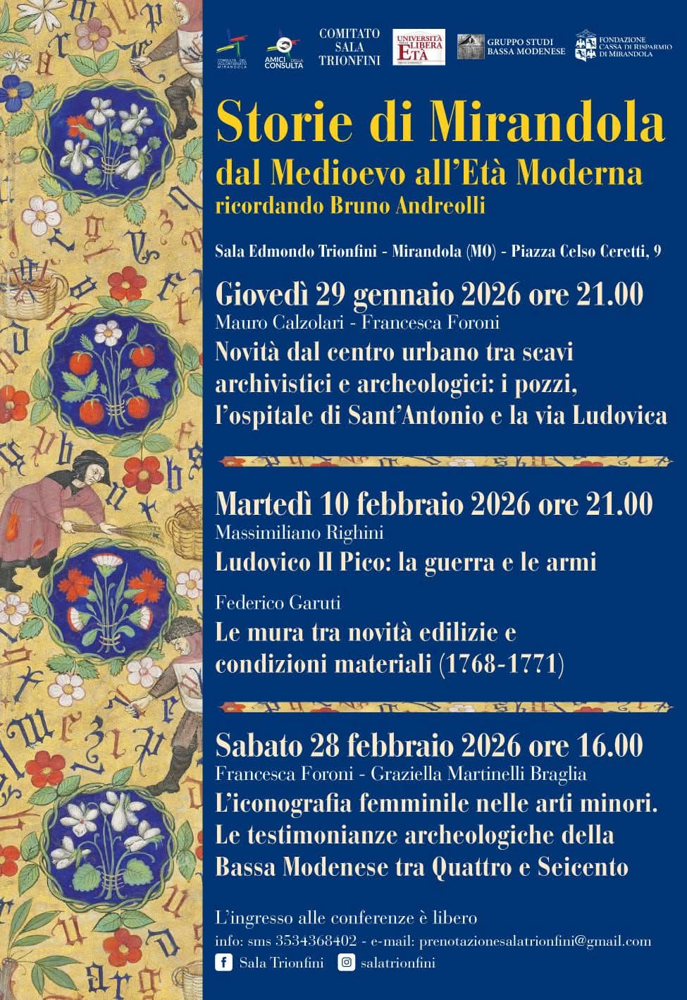 10 Febbraio a Mirandola – Per ” Storie di Mirandola dal Medioevo all’Età Moderna – Ricordando Bruno Andreolli”
