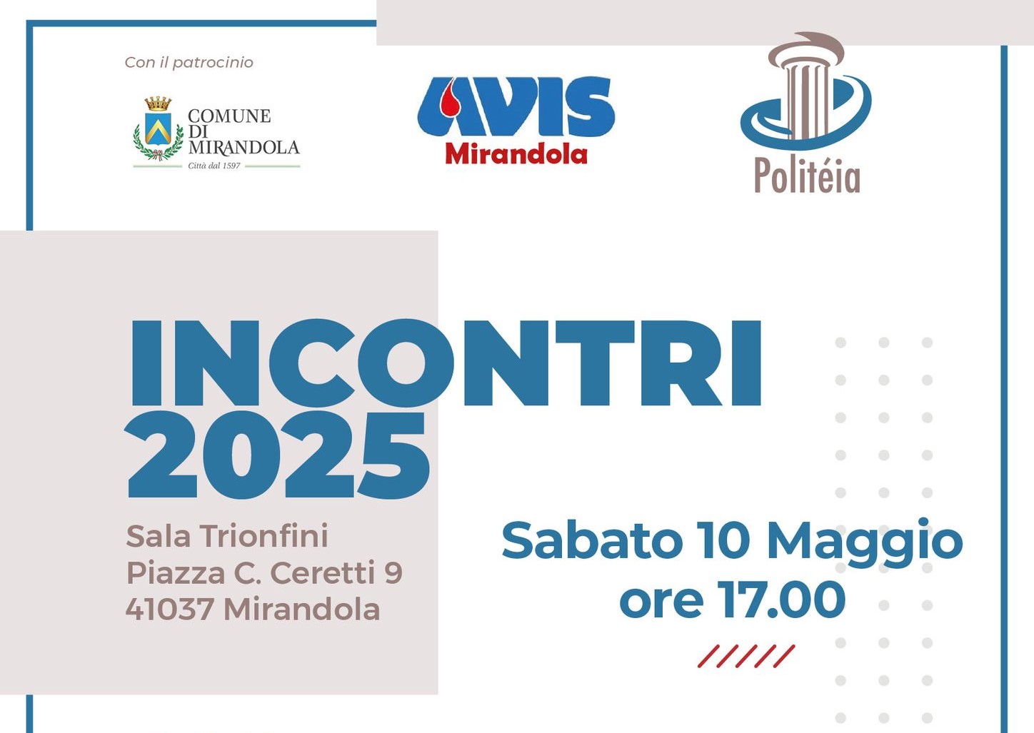 10 Maggio a Mirandola – AVIS Mirandola e Politeia – Al lavoro con il Presidente – Riflessioni nel centenario di Giorgio Napolitano