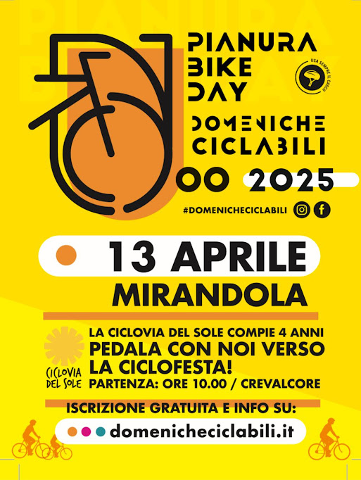 C𝗜𝗖𝗟𝗢𝗙𝗘𝗦𝗧𝗔 𝟮𝟬𝟮𝟱 – Il primo appuntamento delle Domeniche Ciclabili 2025 guiderà i partecipanti alla scoperta della pianura tra Bologna e Modena, lungo la 𝗖𝗶𝗰𝗹𝗼𝘃𝗶𝗮 𝗱𝗲𝗹 𝗦𝗼𝗹𝗲, fino alla grande 𝘾𝙞𝙘𝙡𝙤𝙛𝙚𝙨𝙩𝙖.