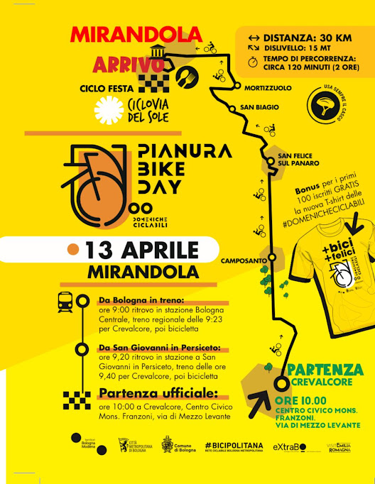 Il percorso si concluderà con una spettacolare “volata” di biciclette lungo le antiche mura di Mirandola, sulla circonvallazione chiusa al traffico.