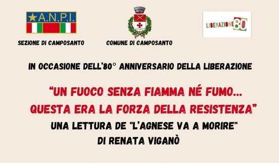 In occasione dell’80° anniversario della Liberazione, l’Amministrazione Comunale di Camposanto, in collaborazione con la sezione A.N.P.I. di Camposanto, organizza una serata culturale dal titolo “Un fuoco senza fiamma né fumo… questa era la forza della Resistenza”, dedicata alla memoria e alla riflessione sui valori della Resistenza.