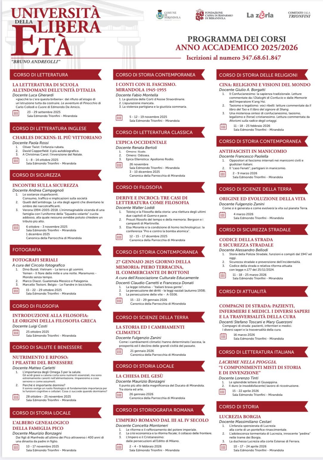 14 Settembre a Mirandola – Università della Libera Età – Il programma