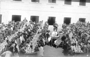 Per la ricreazione io portavo da casa una mela da mangiare e poi davano ai poveri la pagnotta di pane nero. Noi eravamo tanto poveri! Ci davano anche da bere l’olio di merluzzo in un cucchiaio portato da casa (mia mamma mi aveva dato un cucchiaione, il più grosso che c’era a casa, incartato, insieme con alcune mentine da mangiare dopo averlo bevuto). Com’era disgustoso quell’olio unto e come sapeva di pesce! Dopo del tempo a me e a mio fratello Fernando, che aveva lo stomaco delicato, hanno dato, al posto dell’olio di merluzzo, un’emulsione di pesce che era più buona.