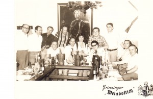 Nelle foto:Grinziger Weinbottich (da sx Alessandro Calari,Romano Flandoli,Mario Veronesi,Romano Ferrari,Carlo Bellini,Carlo Gasparini,Gianni Bellini,Leonardo Bigi,Libero Luppi,Giorgio Goldoni e l’agente ungherese agente ungherese Laszlo Nizsalovszky.