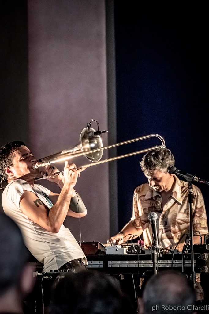 Un duo musicale atipico in un gioco di equilibri tra melodia, ritmo, armonia ed elettronica. Il nuovo appuntamento in terra modenese del Festival Mundus 2020 organizzato da ATER Fondazione vede protagonisti sul palco del parco di Piazza Matteotti a Mirandola mercoledì 22 luglio alle 21.30 i noti musicisti italiani Gianluca Petrella al trombone ed effetti e Pasquale Mirra al vibrafono, percussioni ed effetti. In caso di maltempo l’evento si terrà presso l’Auditorium Rita Levi Montalcini in via 29 Maggio 4. Ingresso unico 10 euro.