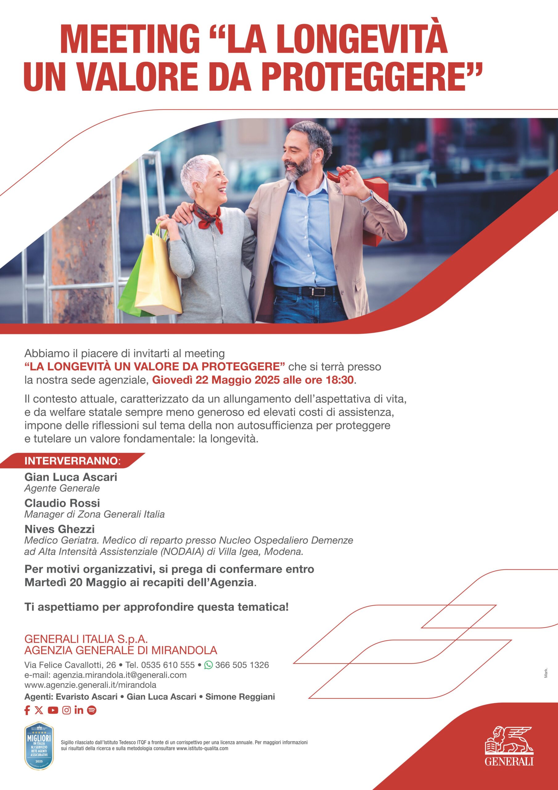 Sarà un’occasione preziosa per approfondire come proteggere e valorizzare la longevità, un bene sempre più prezioso per le persone e le famiglie.