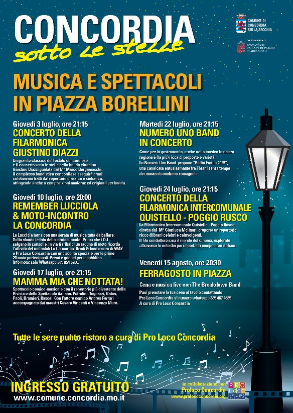 24 Luglio a Concordia – Concerto della Filarmonica Intercomunale Quistello – Poggio Rusco