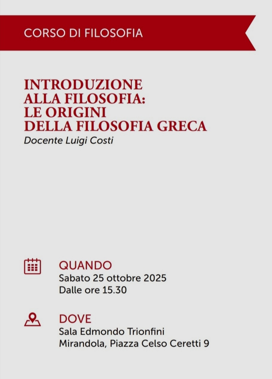 25 Ottobre a Mirandola – Università della Libera Età – Le origini della filosofia greca