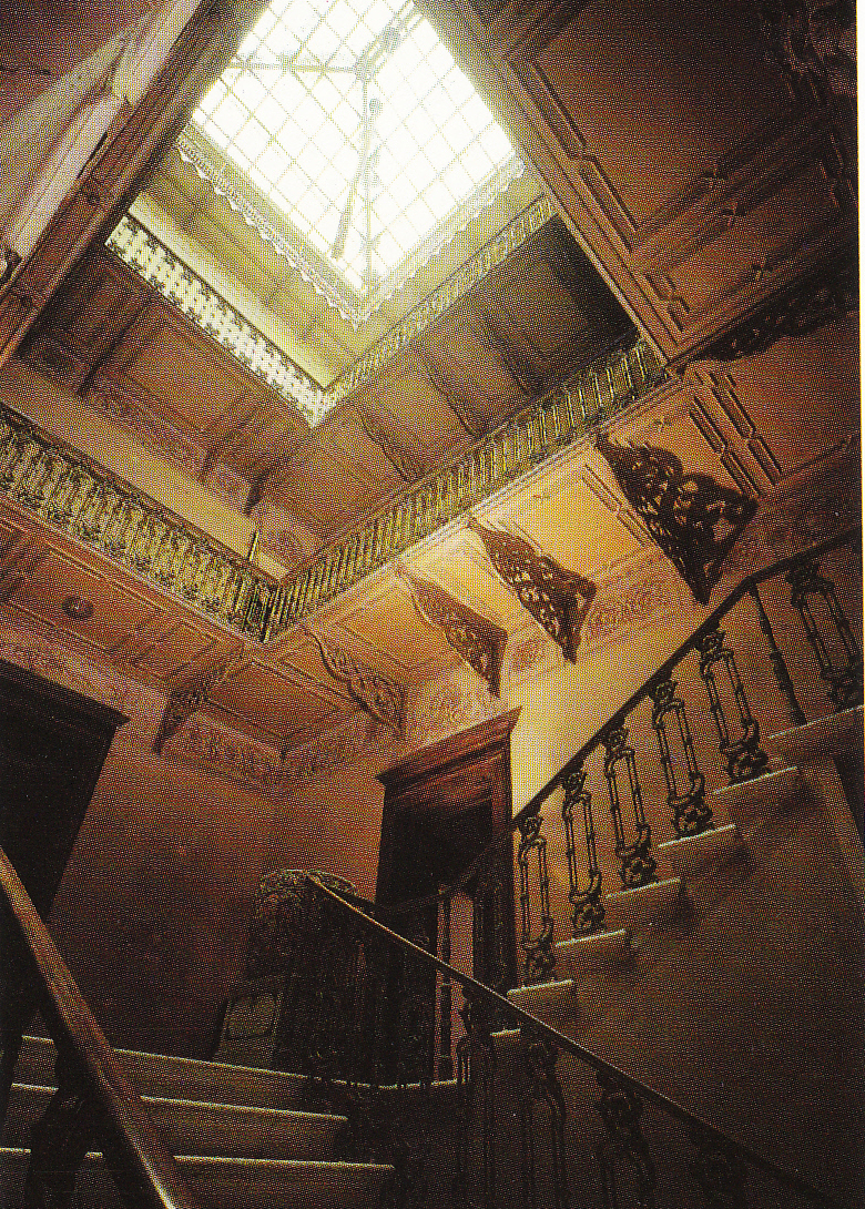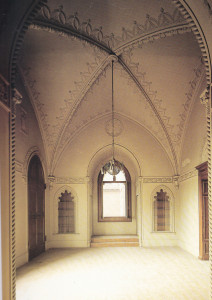 Eclettismo dunque anche all’interno, nell’arredo e nella decorazione, simulazione di stili e di materiali per un’immagine finta, negazione del modello che vuol riprodurre eppure immagine essa stessa autonoma.