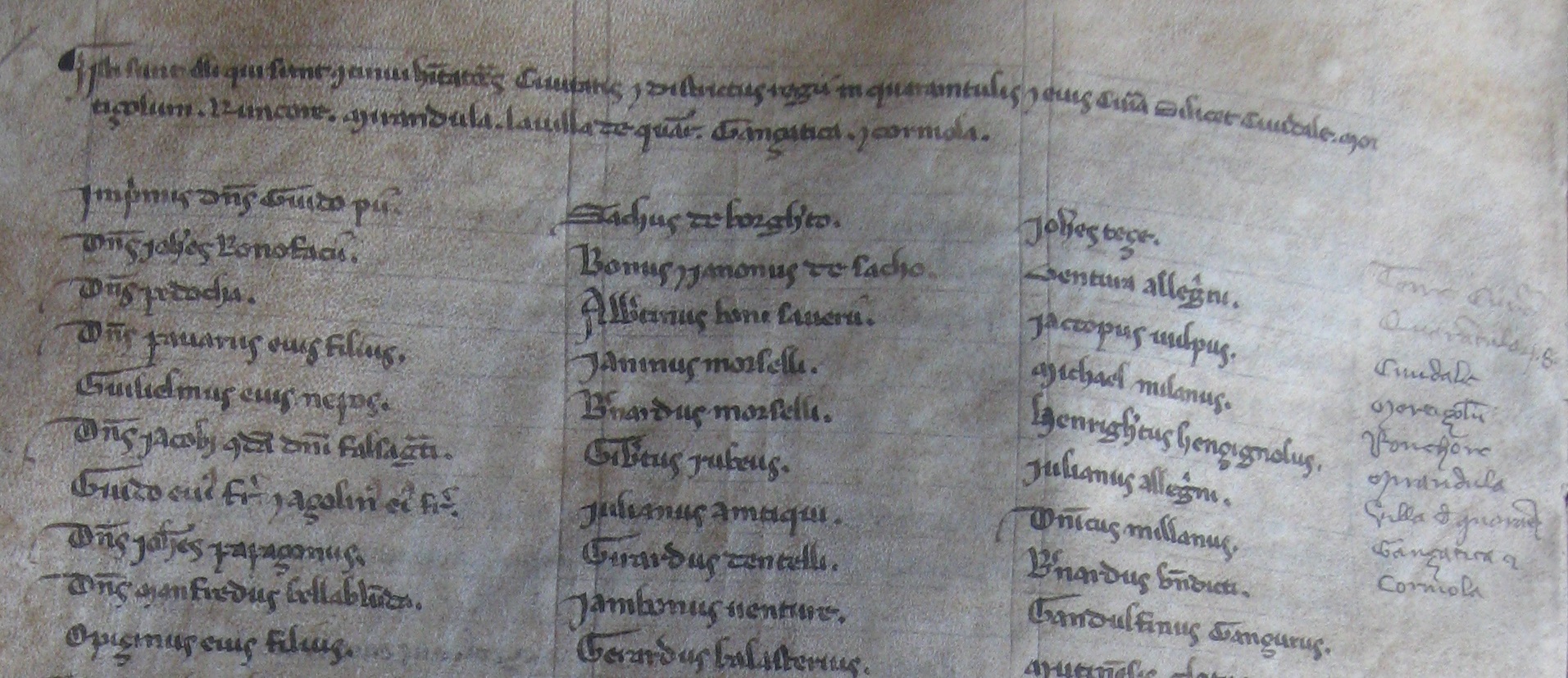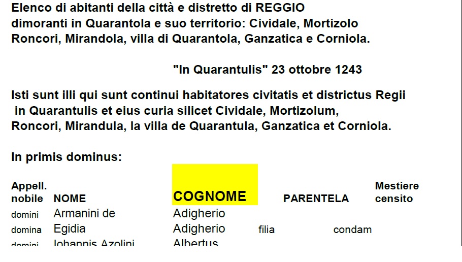 Questo censimento, tipo di documento raro per quel periodo e di notevole valore storico, lo abbiamo studiato durante il Novecentenario della Pieve di Quarantoli io ed il prof. Bruno Andreolli, grazie al quale ho imparato a ricavarne una infinità di informazioni, come radici dei cognomi attuali, mestieri professioni e popolazione esistente sul nostro territorio.