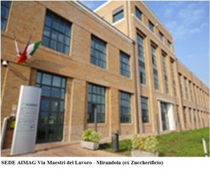 Grazie sempre all’ottimo lavoro svolto sul territorio modenese e alla storia che da secoli accomuna le due Basse, quella modenese e quella mantovana (gran parte delle due Basse, sino al 1432 erano un’unica entità dell’antichissima Corte Medievale di Quarantoli dei Figli di Manfredo), ed all’ottima acqua che AIMAG prendeva dalle sorgenti di Cognento, essa riuscì ad interessare anche l’area Mantovana, al punto di arrivare a fornire servizi pure ad alcuni di quei comuni e di nuovo nacque l’esigenza di una sede più grande e l’ex zuccherificio apparve come la soluzione definitiva per cui AIMAG decise di stanziare 6 miliardi di lire per acquisire e ristrutturare quella sede.