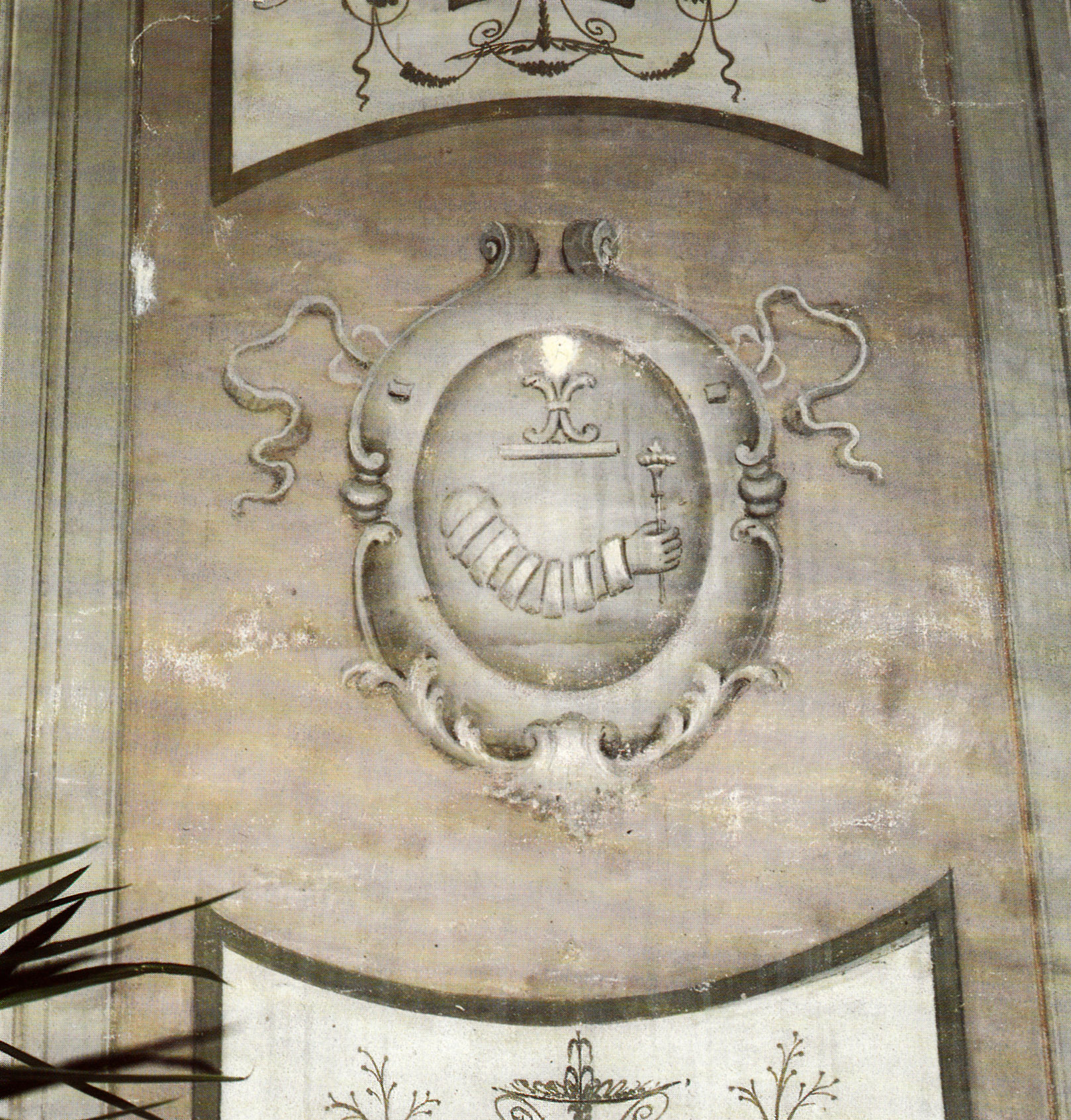 Assai deteriorata la decorazione della saletta attigua, di gusto pienamente ottocentesco: un soffitto a velario — condotto in maniera assai semplificata — e trofei d’armi sospesi tra festoni floreali.