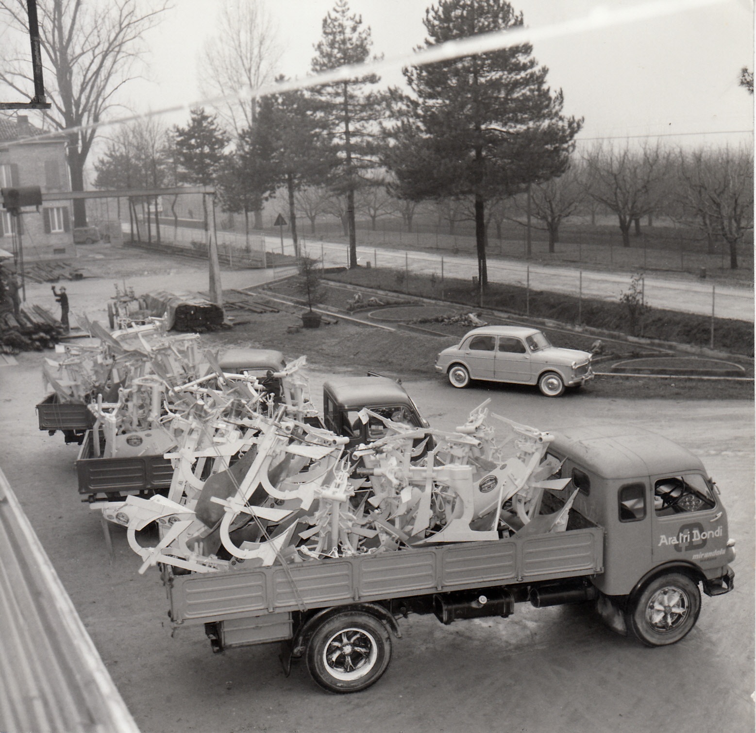 Venne anche introdotto un nuovo reparto di verniciatura, con un forno di cottura, che accelerò processi di finitura delle macchine migliorandone l’aspetto e la resistenza agli agenti atmosferic «Tutto ciò contribuì a mantenere inalterate le quote di mercato – spiega Giuliano Dondi – ma non ad aumentarle per la mancanza di una rete di distribuzione capillare come aveva la concorrenza.
