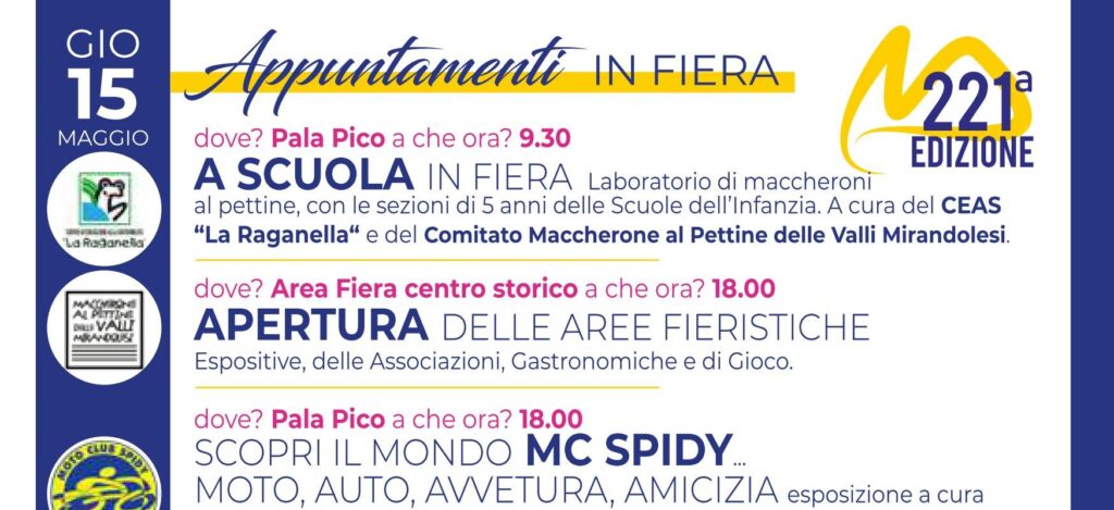 Appuntamento organizzato da Pro Loco Medolla, con il patrocinio del Comune. All'Arena Vallechiara