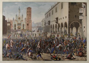E’ in quell’anno infatti che Nicolò, alleatosi ai Gonzaga nemici dei Bonaccosli, partecipa in prima persona ad un agguato in Mantova ai danni del duca con la promessa della restituzione della Mirandola. Viene inscenata una rumorosa rissa davanti al palazzo ducale. Il duca esce con poche guardie per capire cosa succede; a quel punto si scatena il vero attacco e Bonaccolsi viene ucciso, si dice dallo stesso Nicolò. Due figli e due nipoti del duca vengono consegnati al Pico che gli farà fare la stessa fine, nella stessa prigione, del padre e dei fratelli. Purtroppo i Gonzaga non mantengono le promesse fatte … ma che surpresa. Dopo il reinsediamento dei Pico nella Mirandola, gli impongono un vicario a cui dovranno obbedire e l’alleanza diventa dominio. I Pico allora si alleano ai Visconti ed attraverso di essi servono il diritto imperiale, specialmente Paolo Pico figlio di uno dei figli di Francesco morto di fame nelle segrete di Casteldario.