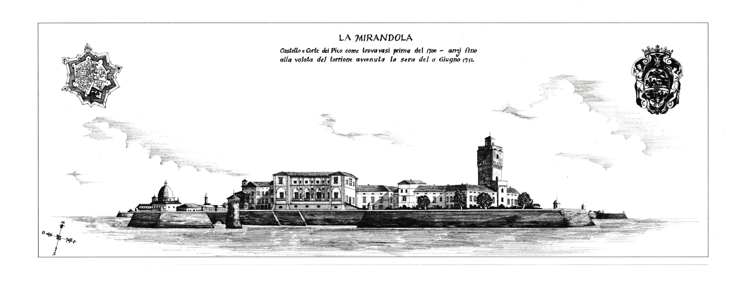 L’11 GIUGNO 1714 il torrione voluto da Gio. Francesco II Pico esplode. Il castello è distrutto, la città è devastata e i documenti dei Pico che ne occupavano un intero piano, secoli di memoria cartacea di Mirandola, sono dispersi e sepolti tra le macerie.