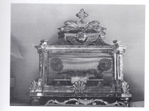 Si ha notizia che l’Imperatore Ludovico il Pio, figlio di Carlo Magno, nel 816 autorizza la traslazione del corpo del Santo dalla Puglia per tumolarlo nella chiesa di San Giorgio nel reggiano, in località Garfaniana. Garfaniana è accertato essere l’antico nome della località che poi adotterà il nome del Santo, in un’area che a quel tempo apparteneva alla diocesi di Reggio. E’ quindi l’attestazione più antica della presenza delle reliquie del Santo ma il documento che ci è pervenuto è della prima metà del 1500 che si dice trascritto da una cronaca non più reperibile della chiesa di San Pietro di Reggio ma diverse incongruenze nello scritto fanno nascere forti dubbi sulla sua autenticità.