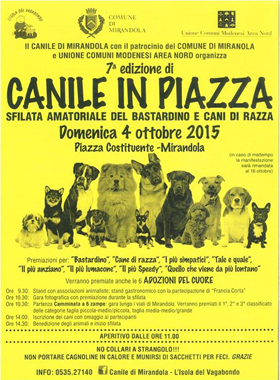 L’evento è organizzato dall’associazione L’Isola del Vagabondo, che gestisce il canile, dal Comune di Mirandola e dall’Unione Comuni Modenesi Area Nord. In caso di maltempo la manifestazione sarà rinviata al 18 ottobre.