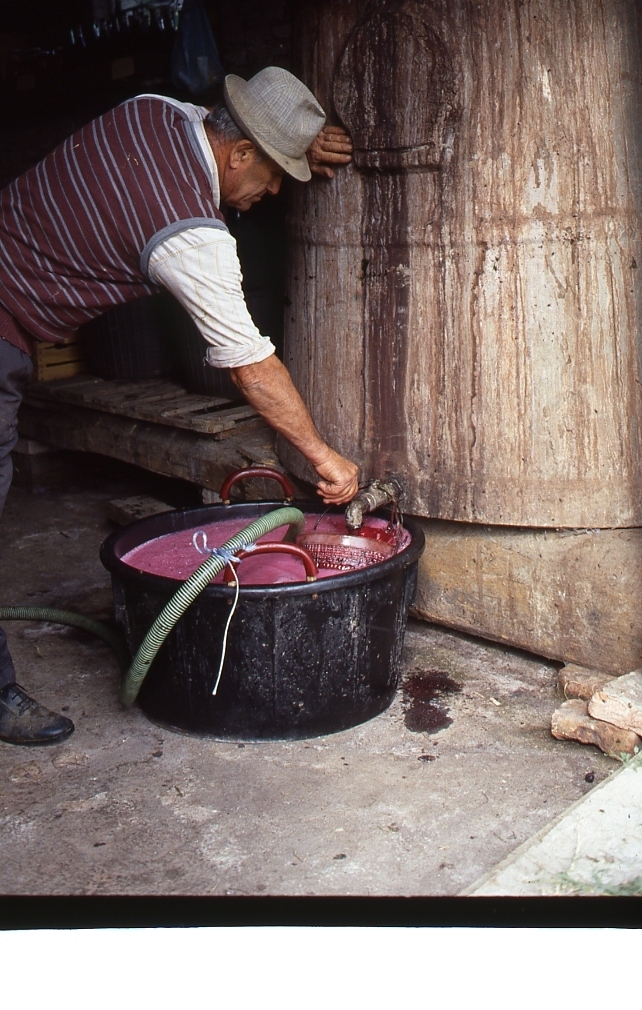 L’era al sgnor Alfeo Gallini e so muièr Delfina, che oltre la tipografia in piazza Baccarini avevano anche una deliziosa piccola drogheria. Il gesto simbolico era accolto con simpatia e con un bel scartuzìn ad mintìn culurà. In setémbar i tinazz erano messi a bussar con la tela ad sach sémpar bagnada perché di lì a poco sarebbero stati riempiti ad móst, d’uva d’or, ad palgrina, ad clinto e ad lambrusch, pigiato a piedi anch dai putlét, in una piccola mastlìna. Gran muviment d’urtlan perché si era al colmo del raccolto di certi frutti, in particolare i fichi. A la fin ad setémbar si mettevano via l’abundanza e più avanti i pom campanìn, poi si facevano il s’ciapèl, cioè fèti ad pom messe a seccare al sole.
