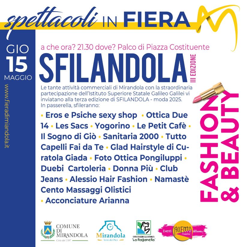 - Giovedì 15 maggio – Sfilandola – III Edizione, la sfilata di moda e creatività realizzata in collaborazione con l’Istituto Galileo Galilei, la rete TAM (Tessile, Abbigliamento, Moda) e i commercianti del centro storico.