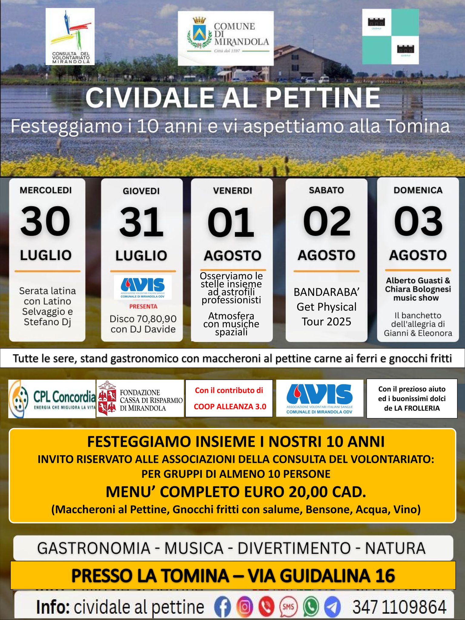 Dal 30 Luglio – Cividale al Pettine alla “Tomina”